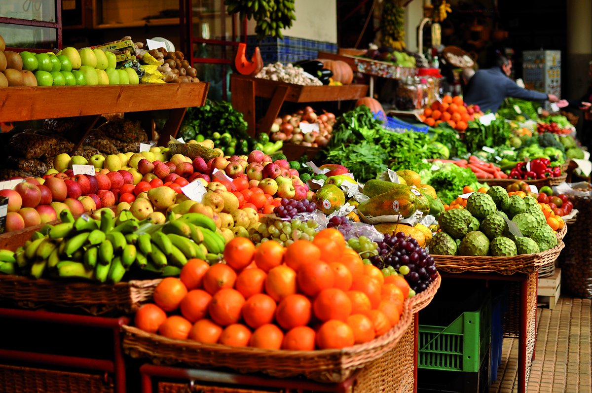 Mit dem Bus geht es in die Hauptstadt Madeiras, nach Funchal. Hier besuchen wir die Markthalle, in der uns zahlreiche exotische Früchte angeboten werden. Natürlich probieren wir diese, seien es "Süßer Kolbenriese", "Zuckerapfel" oder "Baumtomate". Gleich nebenan lockt der Fischstand mit den Degenfischen die Fotografen an, um auf den Auslöser zu drücken.