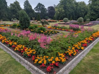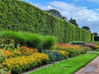 Spazieren Sie durch den romantischen Mauergarten, wo eine doppelte Staudenrabatte mit farbenprächtigen Blüten und betörenden Düften beeindruckt. Im Italienischen Senkgarten schweift Ihr Blick über glänzende Wachssträucher zum Palladianischen Pavillon – ein Anblick, der sich harmonisch in die umgebende Landschaft einfügt.