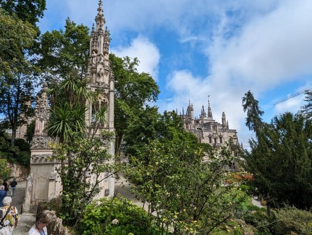 Wir besichtigen den Park des Palacio de Regaleira, eine beeindruckende Anlage mit freimaurerischen Symbolen, üppiger Vegetation und einem begehbaren Brunnen.