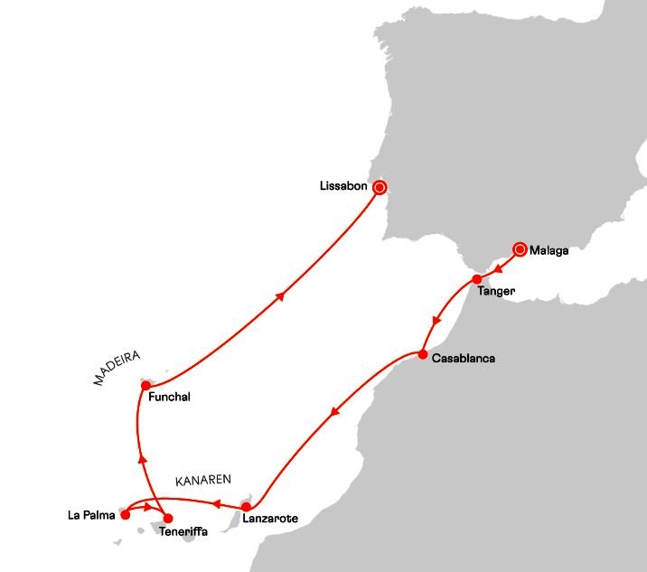 Reisen Sie individuell nach Málaga an oder nutzen Sie das über uns buchbare An- und Abreisepaket der Reederei Hapag-Loyd Cruises. Auch einen Gepäcktransport von Ihrem Zuhause bis zum Flughafen von Málaga organisieren wir Ihnen gerne.