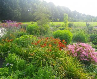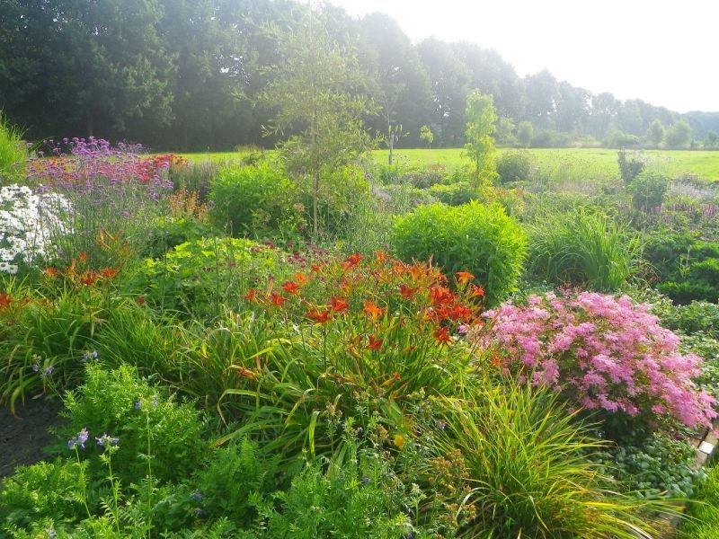 Einen ganz anderen Charakter hat der private Liebhabergarten Heerloo in de Landouwen. Fließende Linien, Staudenbeete, Gräser und Wildblumen prägen dieses naturnah gestaltete Gartenparadies, das sich harmonisch in die umliegende Landschaft einfügt und eine besondere Leichtigkeit ausstrahlt.