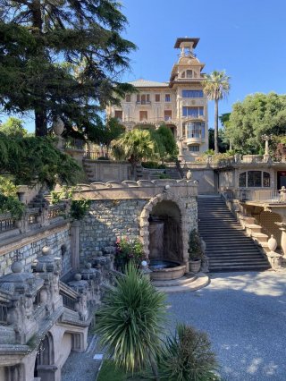 Am Vormittag entdecken Sie die zauberhafte Villa Grock in Imperia, ein einzigartiges Werk des berühmten Schweizer Clowns Adrien Wettach, besser bekannt als Grock. Er liebte Ligurien so sehr, dass er sich 1924 ein Stück Land in Imperia sicherte und bis 1930 seine eigene Fantasiewelt erschuf. Im grandiosen Park erinnert alles an den Zirkus: bauchige Säulen wie bei den Clowns, bunte Bälle für Geschicklichkeitsspiele und Dächer, die wie Zirkuszelte leuchten – ein Ort voller Charme, Humor und Kreativität.